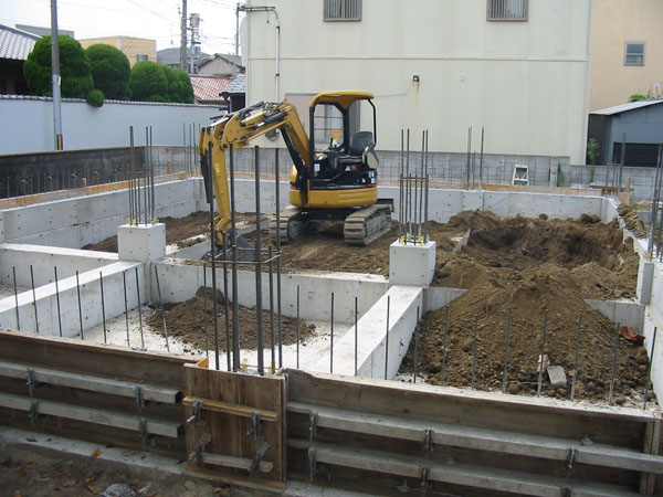 古くなった暗梁を撤去し、コンクリートを補強して基礎を作ります。