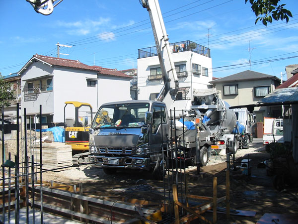 スラブを引いて鉄筋を組み、型枠で形を出し、コンクリートを流せば暗梁の出来上がり。