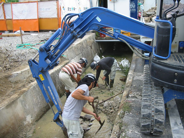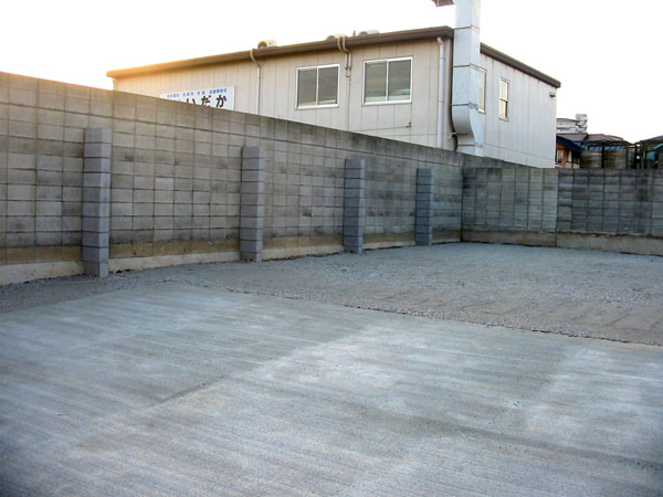 斜面では用壁が重要です。型枠を作り、コンクリートを流します。