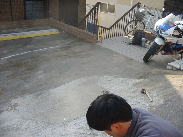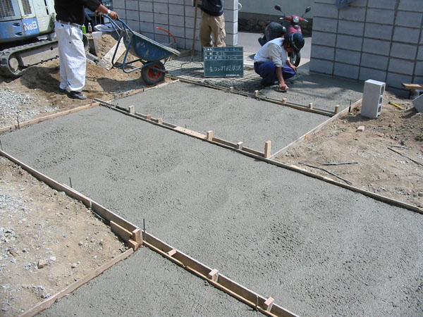 普通のコンクリートを打ち、最後にジャミ石の入ったコンクリートで表面を創ります。