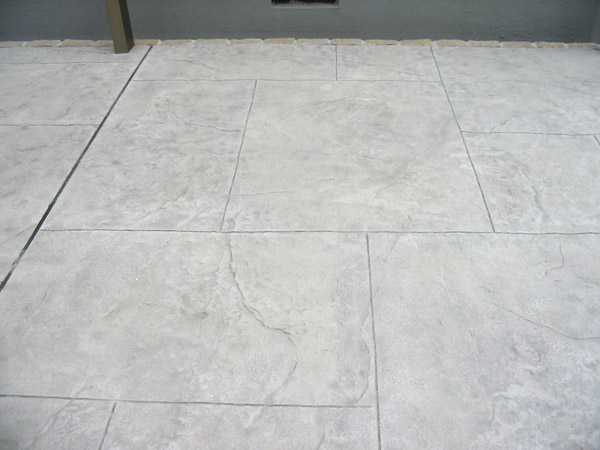普通のコンクリート表面にマット調のスタンプを施し、目地を切ることで大理石調の風合いをゴージャスに仕上がります。