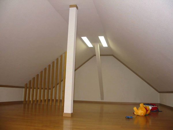 埋め込み型照明を付け、クロスを貼ってフローリングを敷いてでき上がり。子供部屋にも最適です。