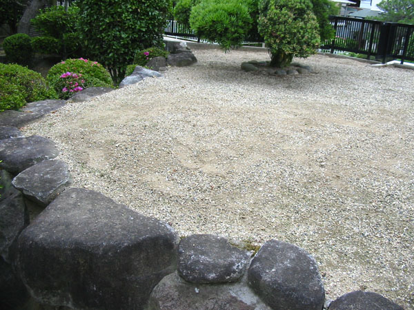 以前は実際にたくさんの鯉が泳いでいましたが枯れ池とし、お庭の景観に合うように紫雲石(青石)を使うことで水の流れと鯉が泳いでいる雰囲気を創りました。