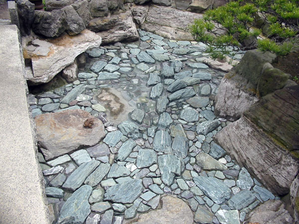 池底の石貼り